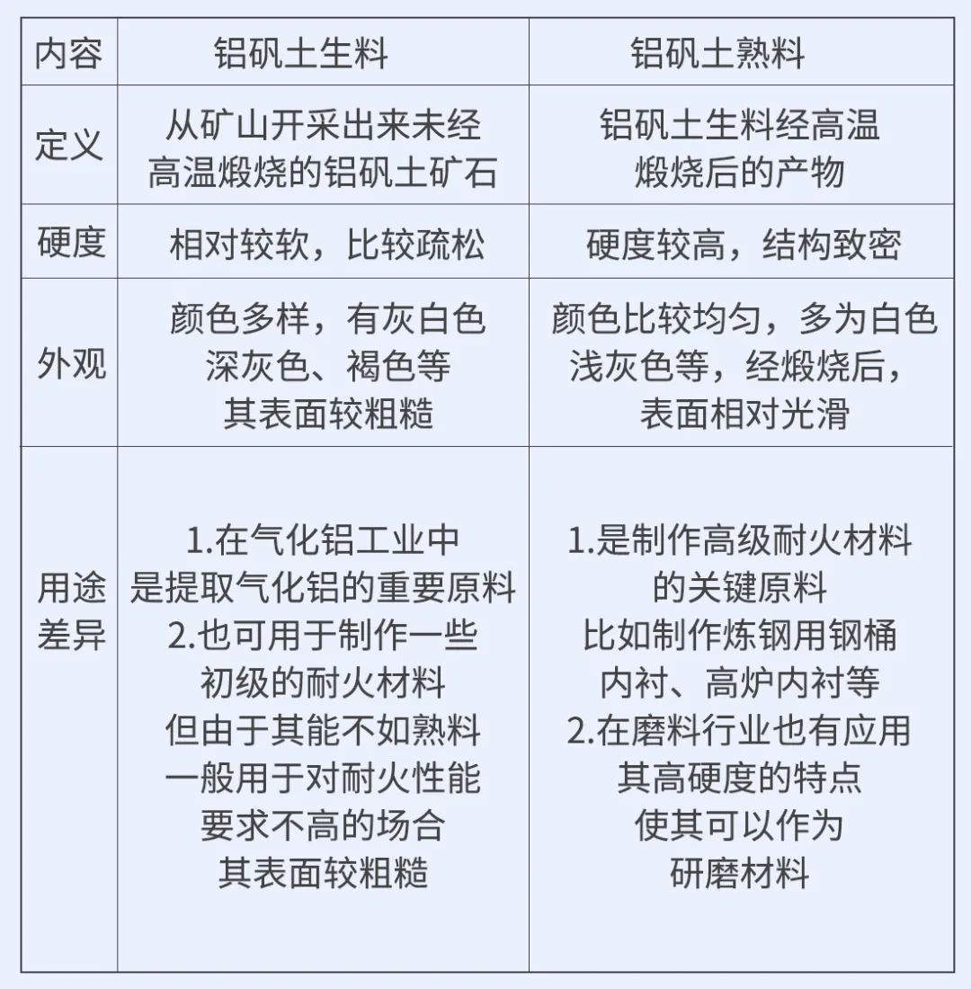 生料指未經煅燒的天然礦石,保留原始礦物結構,多用于水泥混合材或化工填料;熟料則經高溫煅燒脫除結晶水,鋁含量提升且結構致密,是高端陶瓷、耐火磚及電解鋁的關鍵原料。